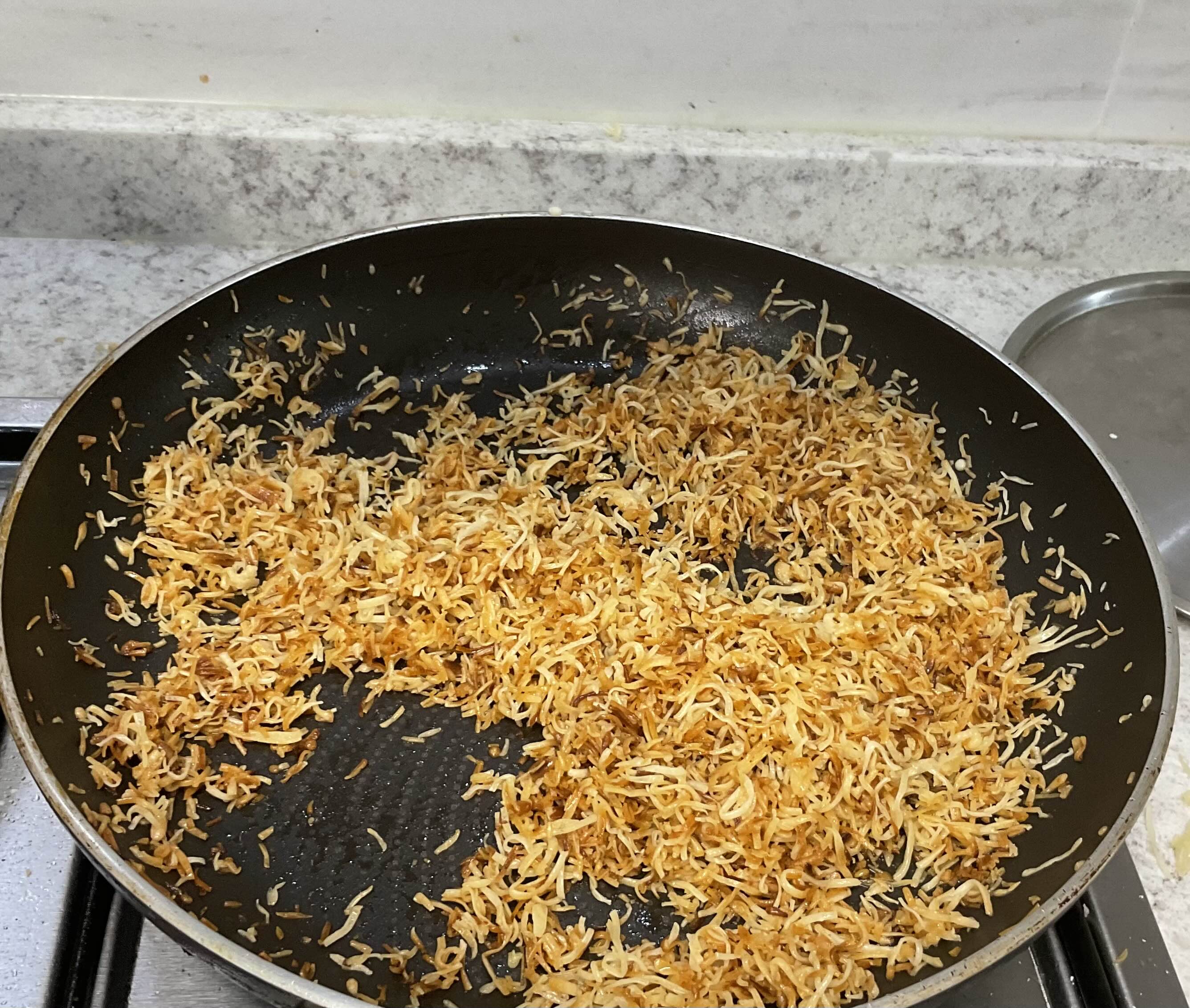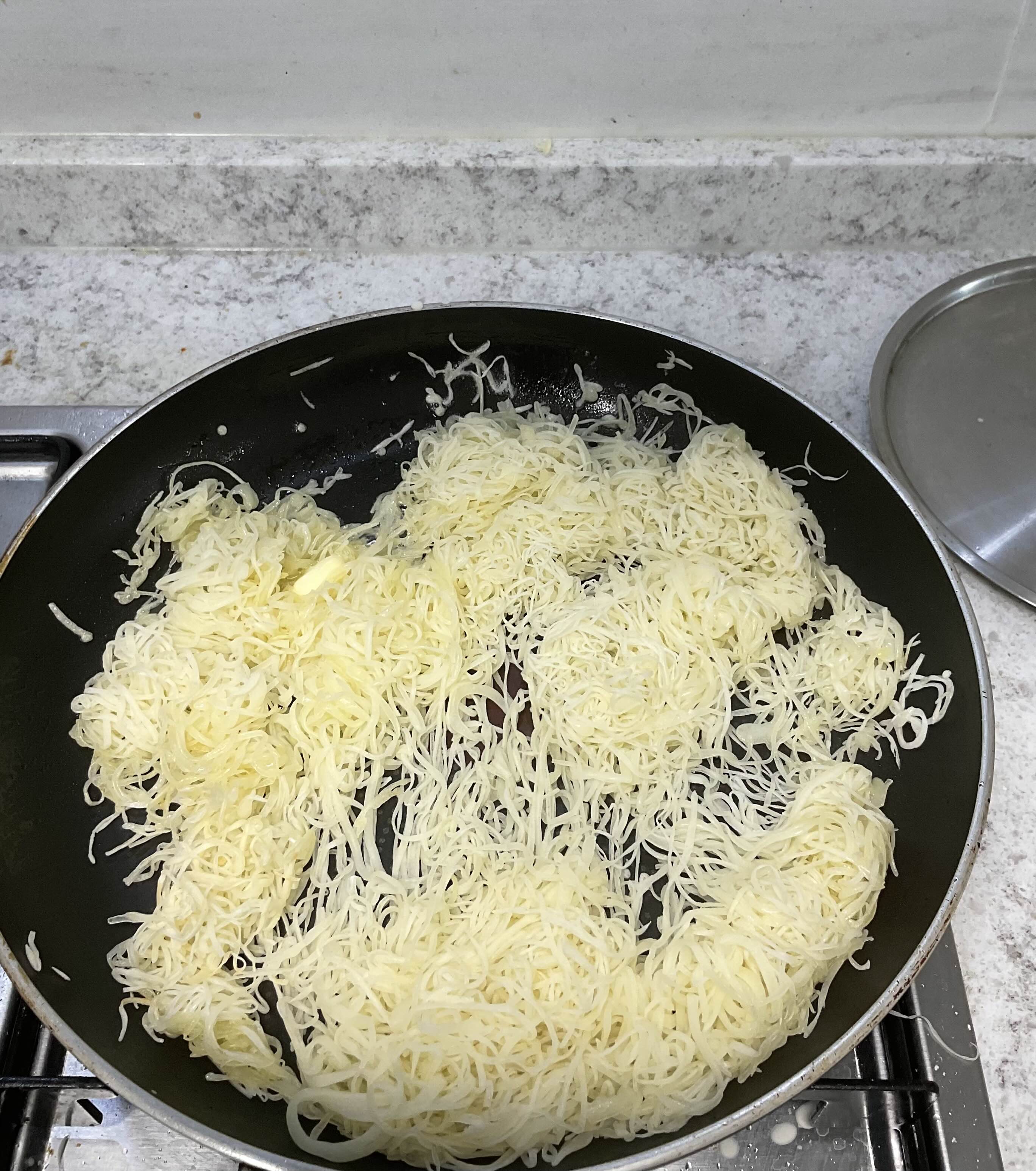 만들어진 카다이프면은 충분한 양의 버터를 팬에 녹인 후, 약불에서 천천히 볶아줍니다.